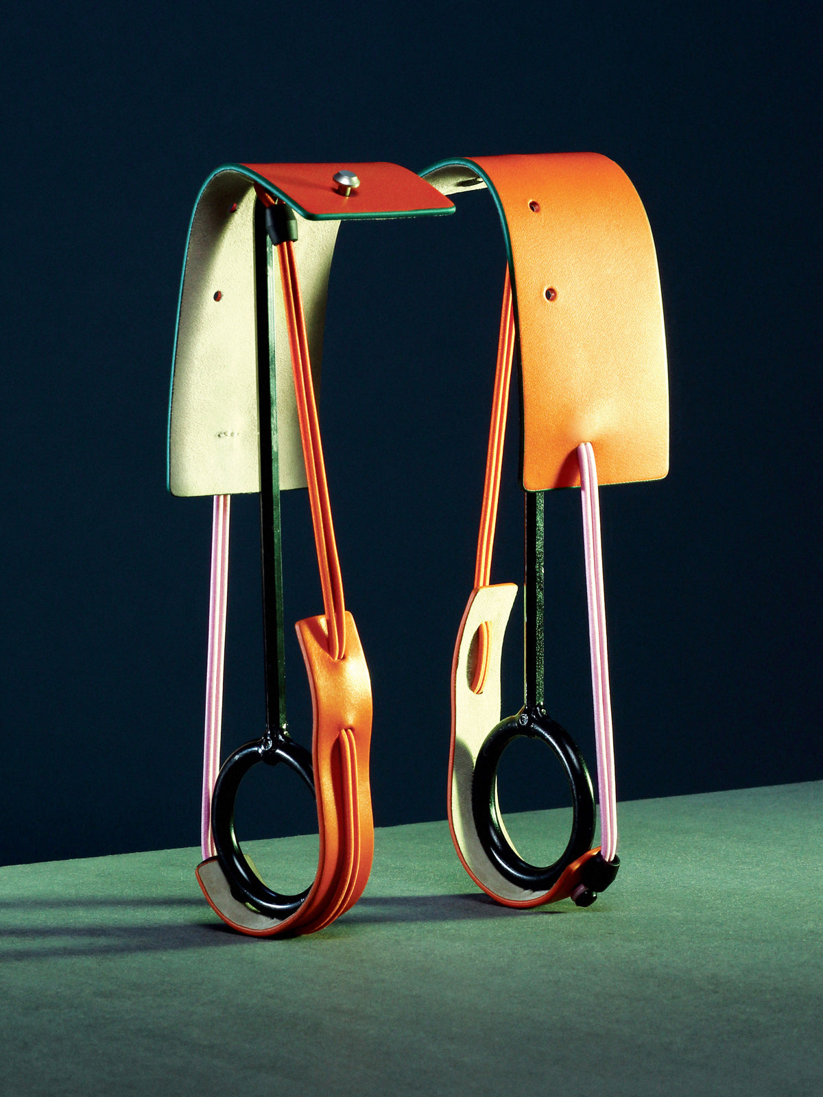 SC-25 and SC-65 orange calf leather shoe cuffs with painted alloy steel lifting hooks